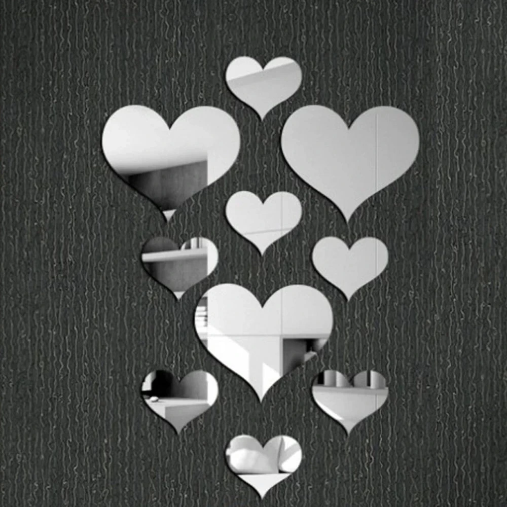 Add a touch of love to any room with these 10Pcs Durable Love Heart Stickers. Easy to apply and remove, these 3D decals are perfect for DIY home decoration. Use on walls, mirrors, or any smooth surface for a simple yet charming touch. (Stickers only)