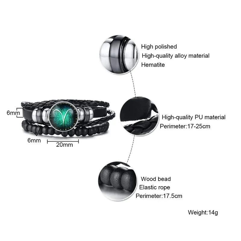 Unveil your celestial charm with our 12 Horoscope Multi-layer Leather Rope Bracelets for Men Women Gifts Vintage. Designed to resonate with the unique personality of each zodiac sign, these bracelets are a perfect blend of style and meaning, making them an ideal accessory for both men and women. Crafted from high-quality leather, these multi-layer bracelets not only showcase a vintage appeal but also promise durability and comfort.