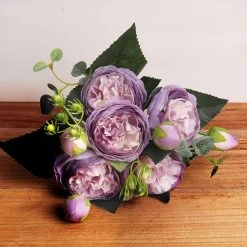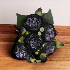 The bouquet includes 5 large peony heads, each measuring around 6cm (2.36in), and 4 small buds at approximately 2.5cm (0.98in). The overall length of this beautiful arrangement is about 30cm (11.81in), making it striking yet manageable.