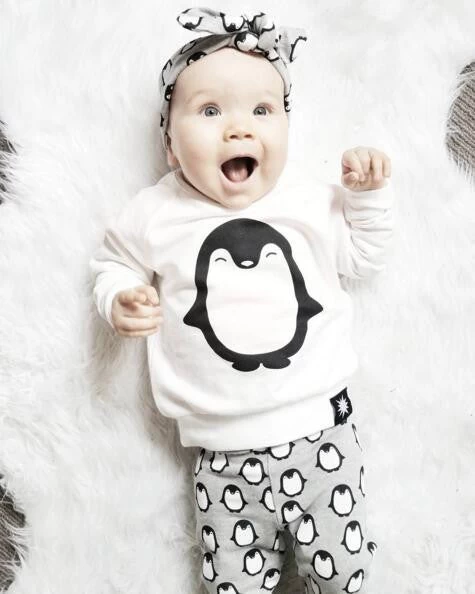 Introducing the 3Pcs Set Baby boy Bebe girl Clothes Autumn born Carter baby girl Penguin clothing sets T-Shirt+Pants+Headband/Christmas Hat — a delightful outfit that combines style and comfort for your little one. This adorable set is perfect for the autumn season, ensuring your baby stays warm while looking trendy. Each piece is designed with care, making it a fantastic choice for both baby boys and girls.