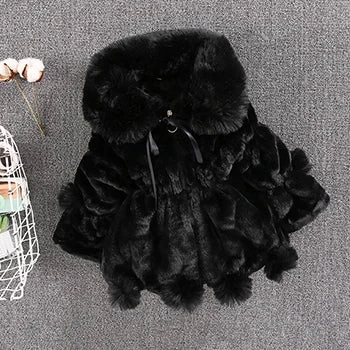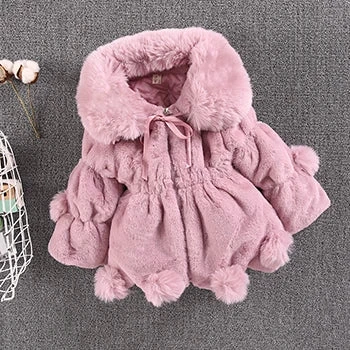 This stunning faux fur coat is an ideal choice for Christmas and other festive occasions. Dress your little princess in this delightful jacket and let her radiate joy and warmth during the holiday season. The turn-down collar and full sleeves offer additional protection against the cold, making it a practical yet stylish choice for winter outings.
