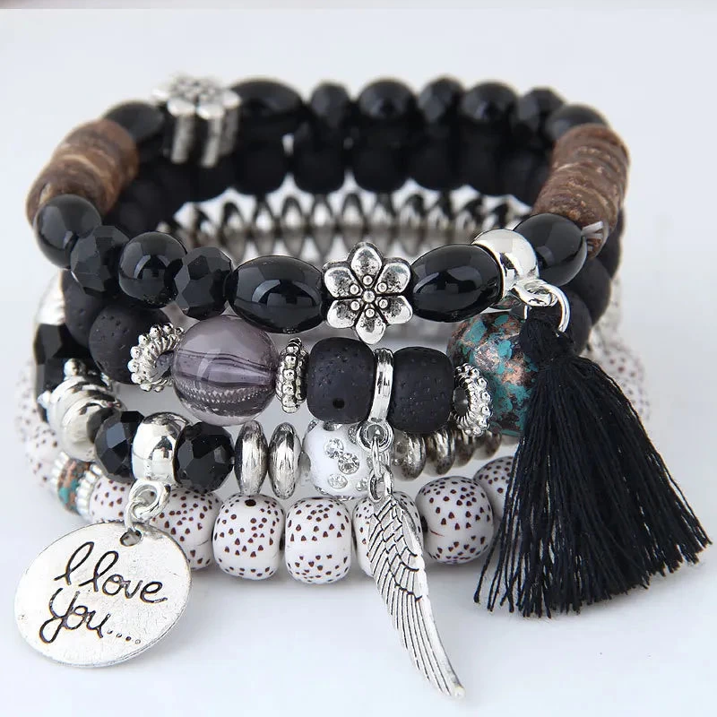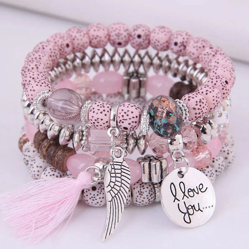Not only does this bracelet offer a stylish addition to your outfit, but it also serves as a mood tracker with its colorful beads. Whether you wear it alone or stack it with other bracelets, the Bohemian Multicolor Pink Crystal Beads Bracelets Women Girls Elastic Tassel Wing Letters Rope Bracelet is sure to make a statement. Embrace your individuality and express your unique style with this fashionable piece. Get yours today and enjoy the perfect blend of elegance and bohemian charm!