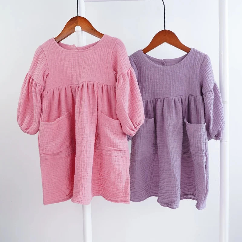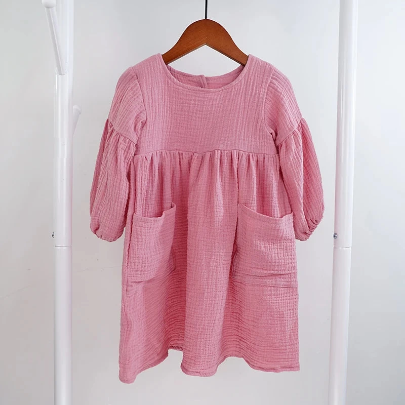 Let your child express her unique style with our Children’s Organic Cotton Double Gauze Loose Pockets Baby Girls Dress Fashion Princess Casual Kids Dresses. This beautiful, functional dress is a must-have addition to her wardrobe!