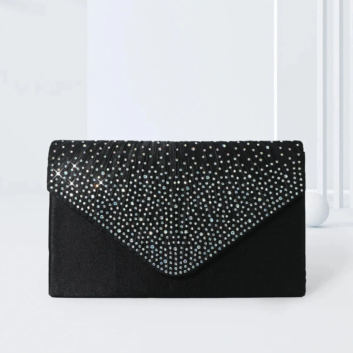 Discover the ultimate in sophistication with our Elegant Rhinestone Evening Bag Ruched Clutch Purse Luxury Flap Handbag. This exquisite accessory is designed to elevate any evening ensemble, making it a must-have for your next special occasion. Crafted with high-quality PVC and lined with soft polyester, this clutch combines durability with a luxurious feel, ensuring it not only looks stunning but also stands the test of time.