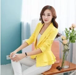This Fashion women blazers and jackets long-sleeve slim blazer ruffle short blazer design candy color Outerwear & Coats is designed to be your go-to outerwear piece. Its combination of style and comfort means you’ll look great without sacrificing ease. Perfect for layering, this blazer can be worn with dresses, skirts, or even your favorite jeans for a stylish, put-together look.