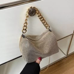 Upgrade your style game with this bling diamond shoulder bag. Perfect for weddings or parties, this bag adds glamour and fun with its rhinestone detailing. Don’t miss out on the fashion trend and grab this new chains bag for yourself today!