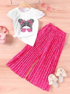 Get ready for serious cuteness overload with our Girls Clothing Set! Made of soft, durable cotton and featuring a trendy combination of short sleeves and wide-leg pants, this set is the perfect addition to any little fashionista’s wardrobe. Dress her in style with this casual, two-piece set.