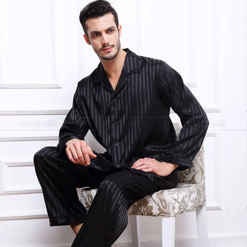 Experience unparalleled comfort and style with our Mens Silk Satin Pajamas Set Pajama Pyjamas Set Sleepwear Set Loungewear S,M,L,XL,2XL,3XL,4XL Plus Striped Black. Crafted from premium silk satin, this pajama set is designed to make your nights restful and your lounging moments luxurious. The elegant striped black pattern adds a touch of sophistication, ensuring you look great even in your downtime.