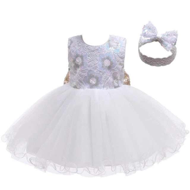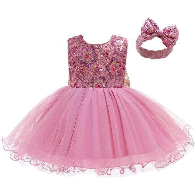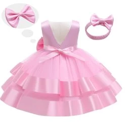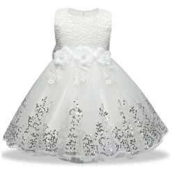 This enchanting ball gown comes in delightful colors like pink and white, making it a versatile choice for any young girl. It is available in various sizes (80, 90, 100, 110, 120) to ensure a perfect fit for your child.