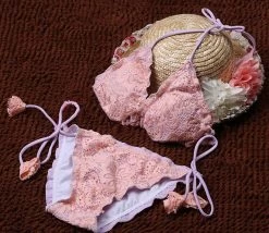 The intricate floral mesh and lace details create a charming and sexy look, perfect for pool parties or beach outings. The low waist design offers a trendy vibe, while the hollow-out features add a touch of allure that will surely turn heads.