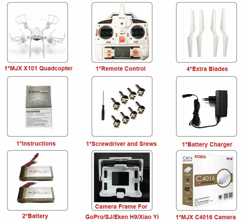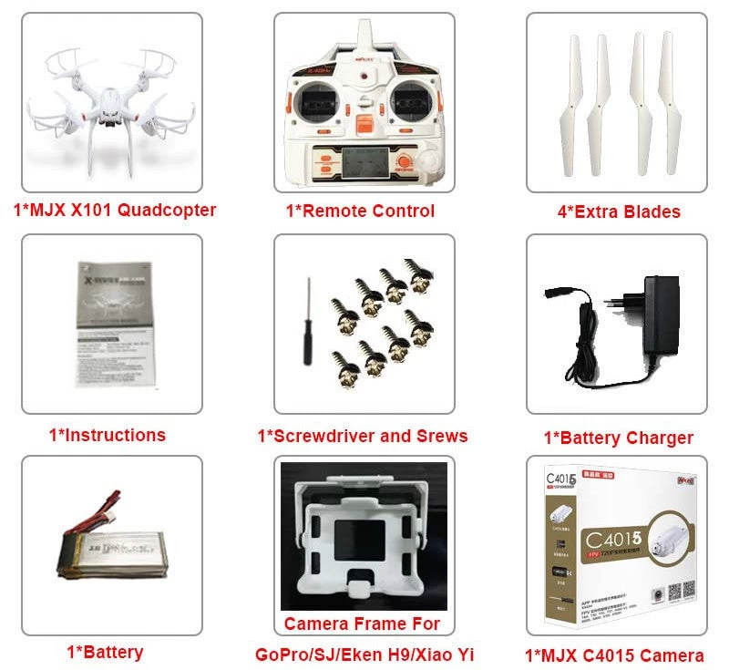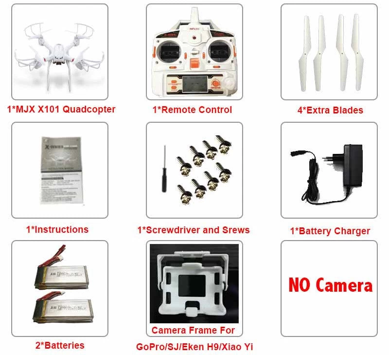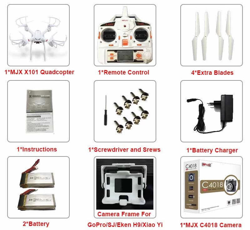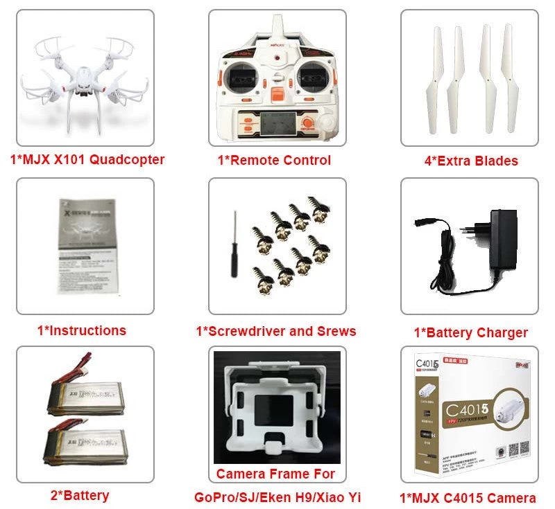 - High-Quality Gimbal: The MJX X101 is designed to accommodate the C4010 FPV WiFi camera, enhancing your aerial photography experience with stunning HD visuals.
