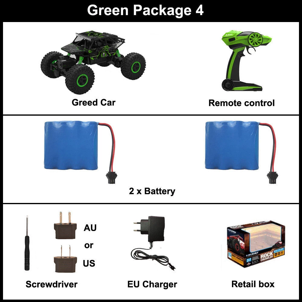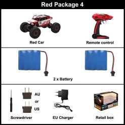 - Ready-to-Go: The RC Car 2.4G 4CH 4WD comes fully assembled, complete with batteries, operating instructions, and a charger.