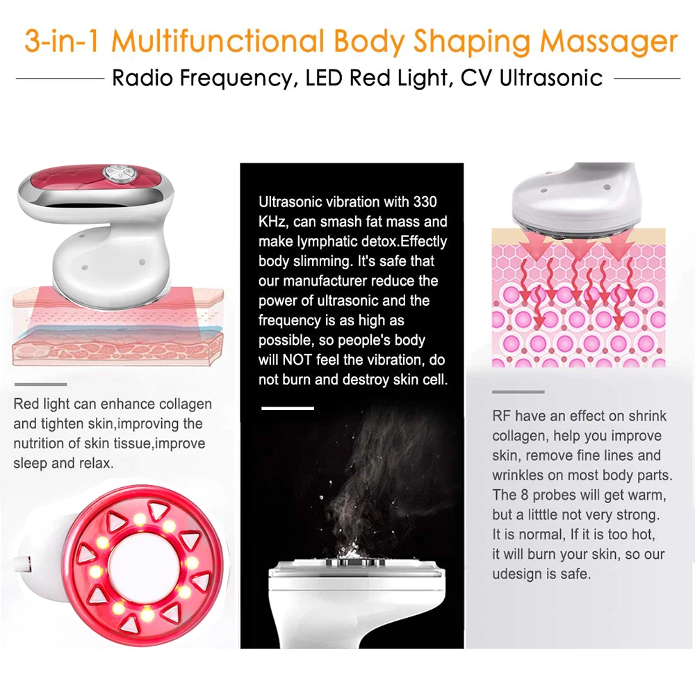 The RF Cavitation Ultrasonic Body Slimming Massager not only helps in weight loss but also rejuvenates your skin, combats hair loss, and improves overall skin texture. With consistent use, enjoy firmer, smoother skin while feeling more confident in your body.
