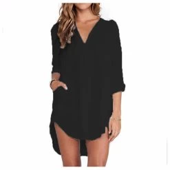 The Sexy Women Sheer White Shirts Dress is not just another blouse; it’s a statement piece that combines functionality with a fashionable edge. The v-neck collar adds a touch of sophistication, making it perfect for both day and night wear. Whether you’re heading to a brunch or a night out, this casual blouse tops your list of must-haves.