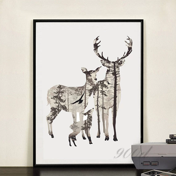 Transform your living space with the stunning Silhouette of Deer Family with Pine Forest Canvas Art Print Painting Poster, Wall Picture for Home Decoration, Home Decor FA396. This exquisite canvas art print captures the serene beauty of nature, showcasing a graceful deer family set against a tranquil pine forest backdrop. Perfect for anyone looking to enhance their home decor, this artwork is designed to bring a touch of wilderness into your home.