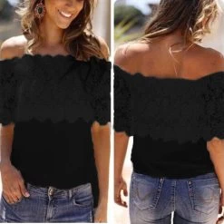 This beautiful off-the-shoulder blouse is amazing. With its lace fabric you can look casual but elegant in this beautiful piece.