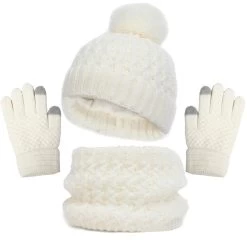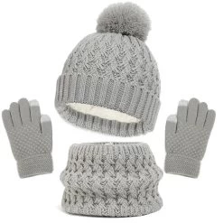 Embrace the winter season with our Toddlers Winter Warm Suits Knitted Hat Scarf and Gloves Set Solid Thermal Suit Boys Girls Caps Set Christmas Gift Winter Outfits. Make every winter outing a fun and comfortable experience for your little ones!