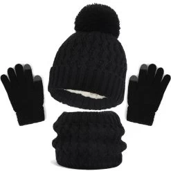 Keep your little ones cozy and fashionable this winter with our Toddlers Winter Warm Suits Knitted Hat Scarf and Gloves Set Solid Thermal Suit Boys Girls Caps Set Christmas Gift Winter Outfits. Designed for both boys and girls, this delightful set includes a plush knitted hat, a soft scarf, and warm gloves, ensuring that your toddlers stay snug during chilly outings.