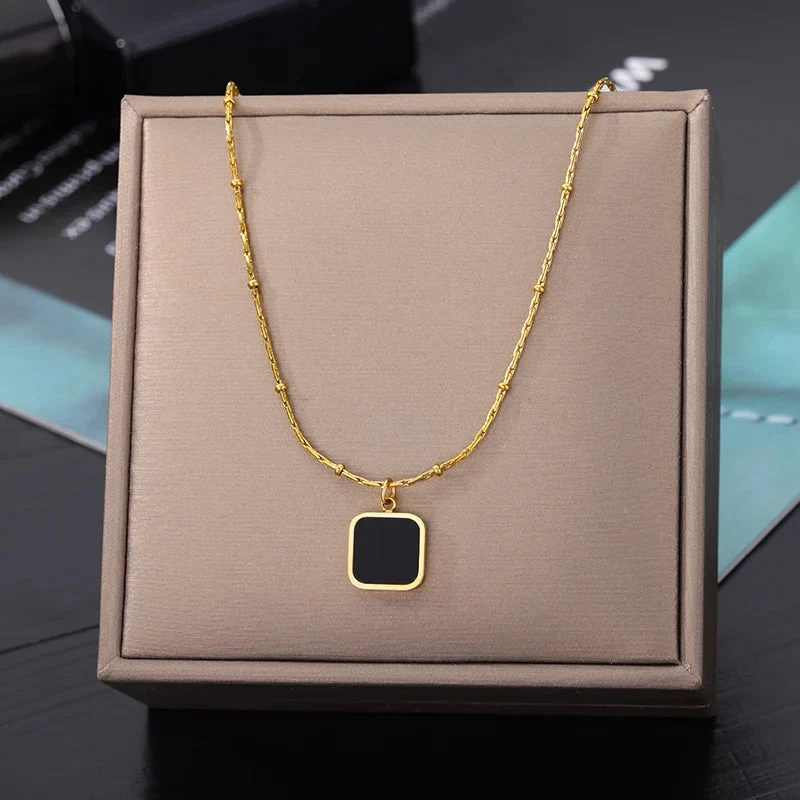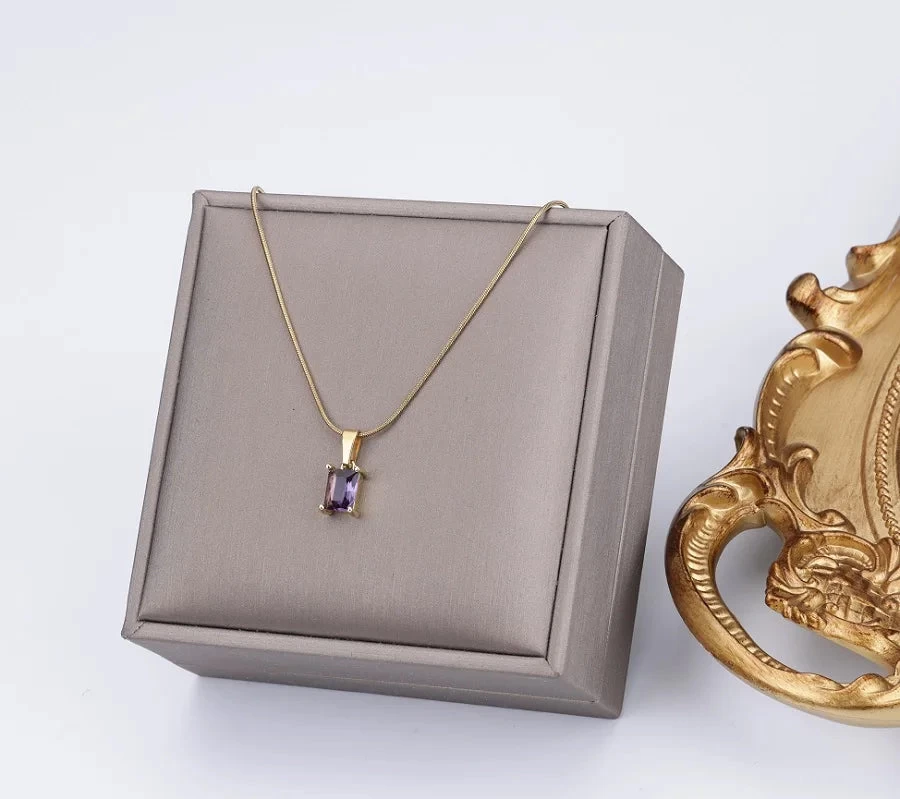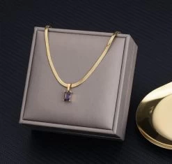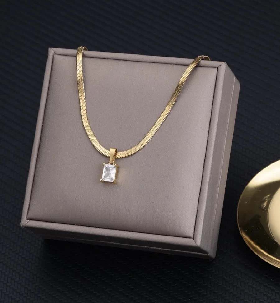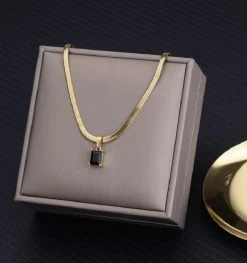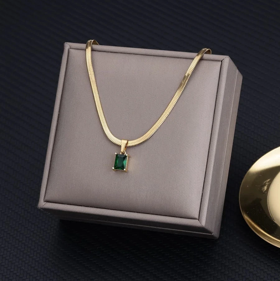Make a statement and express your unique style with this captivating necklace. The Vintage Rust Steel Zircon Necklace Flat Snake Bone Chain Blade Chain Square Emerald Pendant Necklace Women is not just an accessory; it’s a reflection of your individuality.