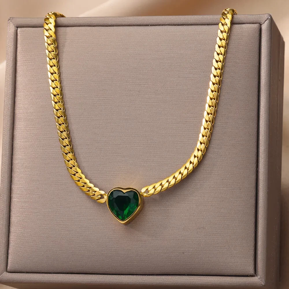 Add a unique touch to your style with our Vintage Rust Steel Zircon Necklace! Made with a flat snake bone chain and a blade chain, it features a stunning square emerald pendant. Perfect for women who want to stand out with a touch of vintage charm.