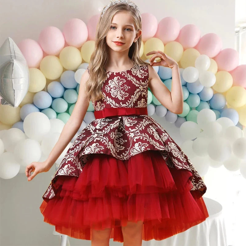 Transform your little girl into a stunning princess with our Vintage Wedding Ceremony Red Flower Girls Dress Opening Party Elegant Bridesmaid Girl Princess Dress Trailing Kids. This exquisite dress is designed for special occasions, making it the perfect choice for weddings, parties, and other celebratory events. The charming trailing design adds a touch of elegance, ensuring your child stands out while feeling comfortable and stylish.