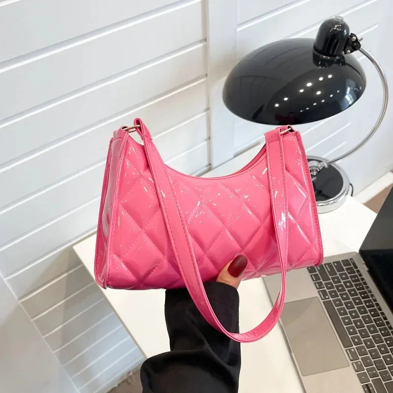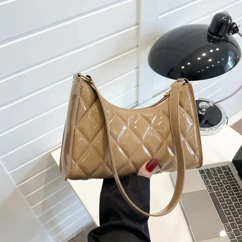 Add some vintage flair to your style with our Women Vintage Y2k Totes Shoulder Bag! Made with glossy leather, this bag is both functional and fashionable. Perfect for a day out shopping or a night out on the town. Carry your essentials in style with this rhombic luxury designer bag.